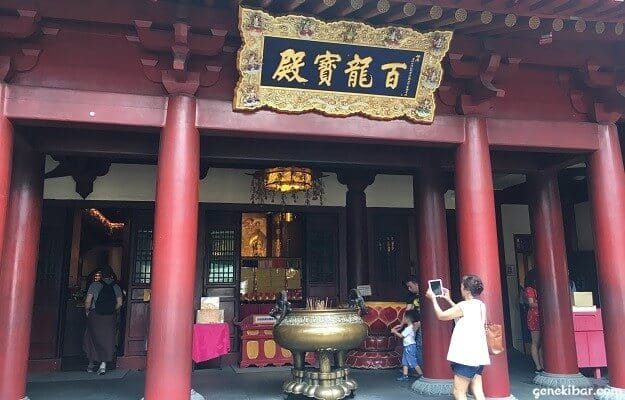 入り口を潜ると見えてくるのが「百龍寳(宝)殿」。ノースリーブやショートパンツなど、肌の露出が多い場合はショールなどが無料で貸し出されているので、それで肌を隠してから入場します。